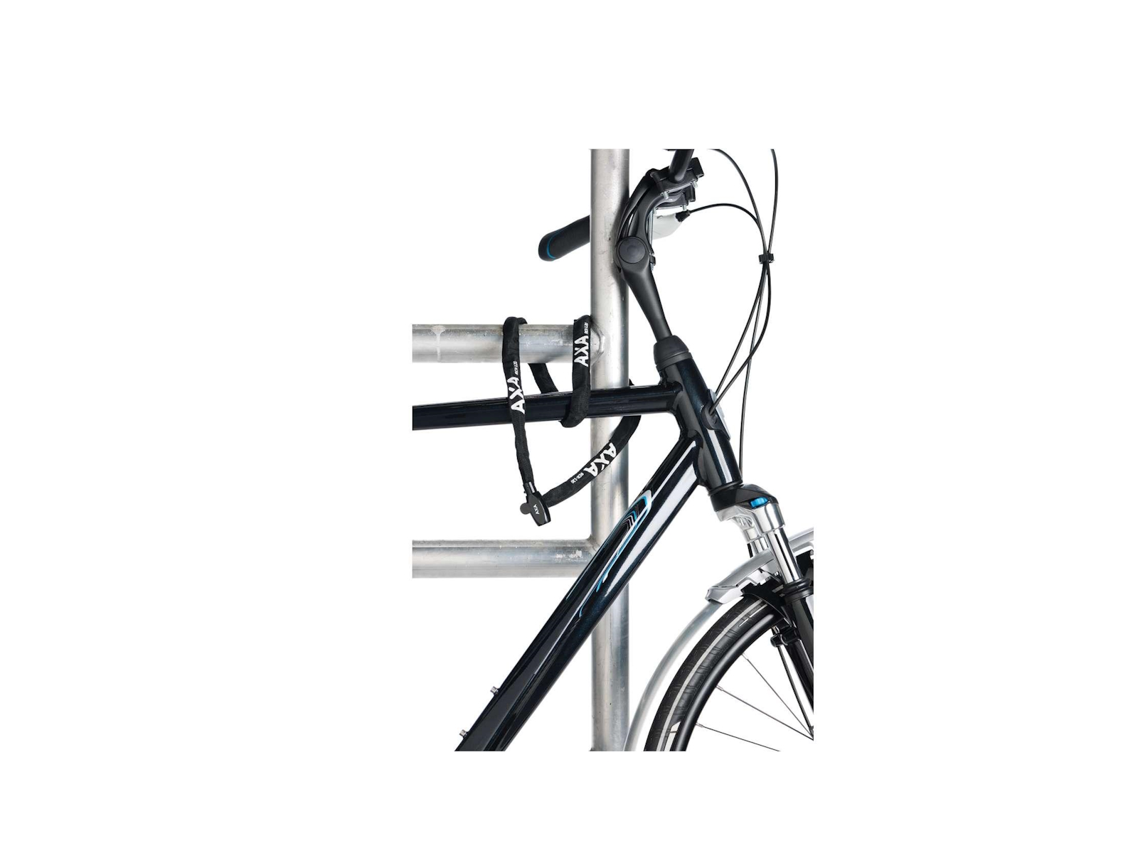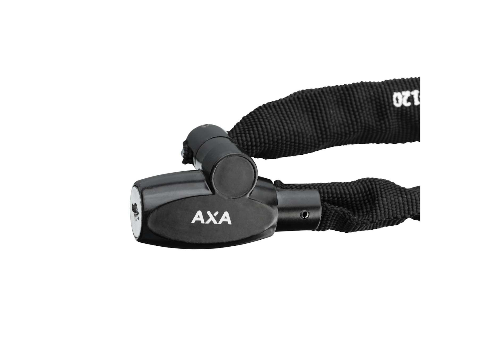 , schwarz mit Zahlenschloss. Die Kette wird in einer schwarzen Hülle geliefert und ist 120 cm lang. Sicherheitsstufe 3